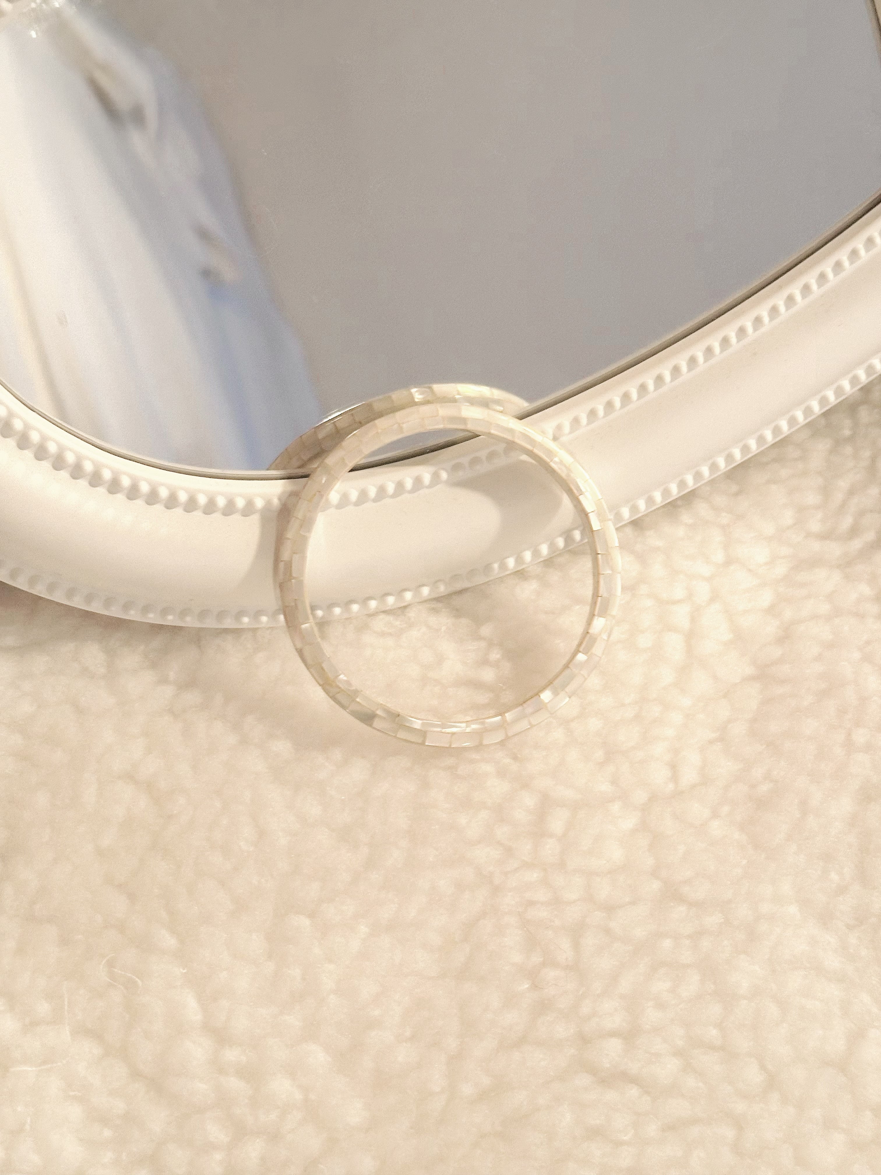 デザイナーが海辺で見つけた貝殻を使用したバングルブレスレット。美しい自然の模様が描かれた貝殻は、一つ一つ異なっており、あなたの個性を引き立てます。軽量でつけ心地が良く、海の幸せを身につけるような気分にさせてくれる、特別なアクセサリーです。さりげないオーシャンスタイルを演出したい方におすすめです。